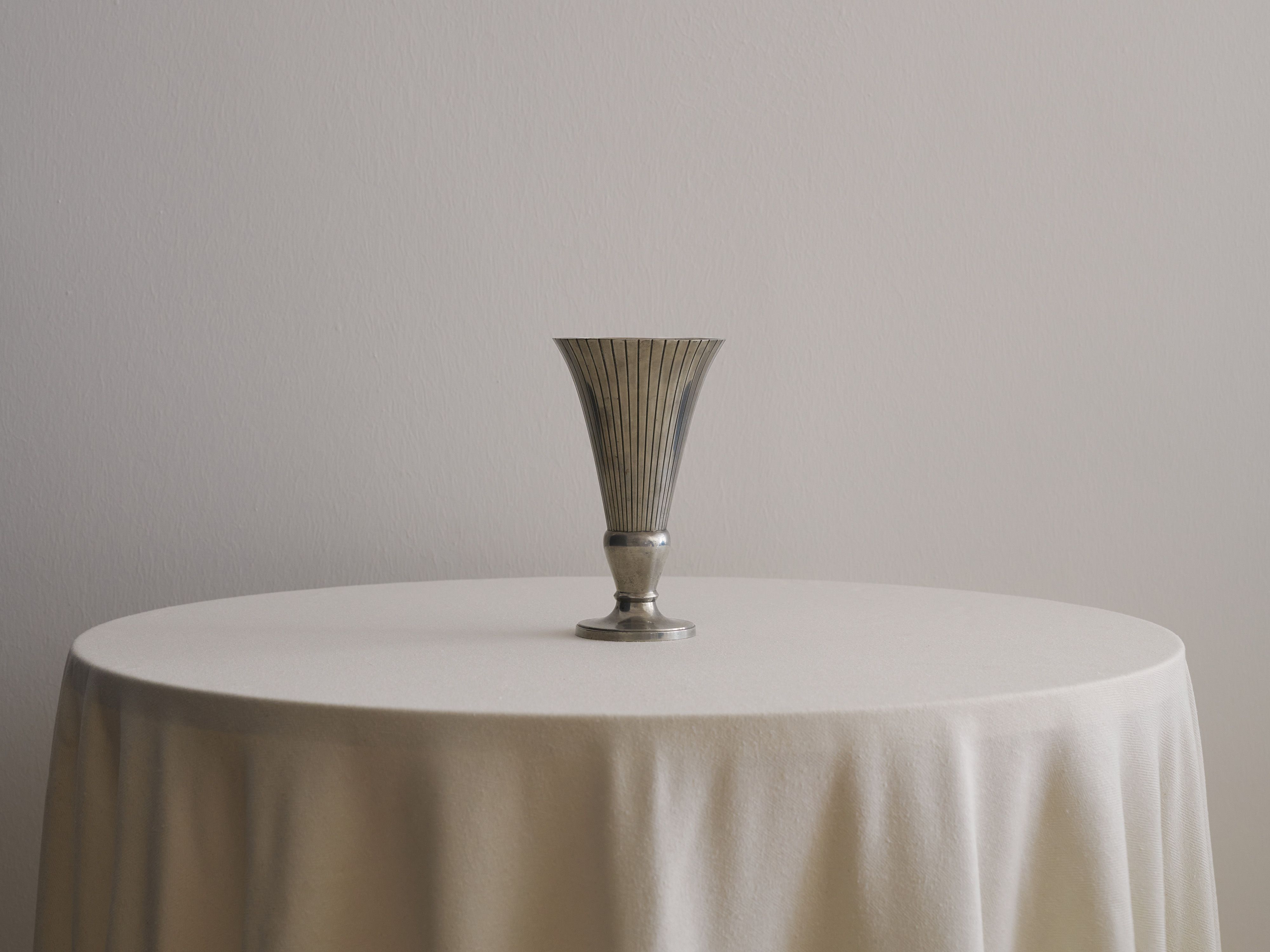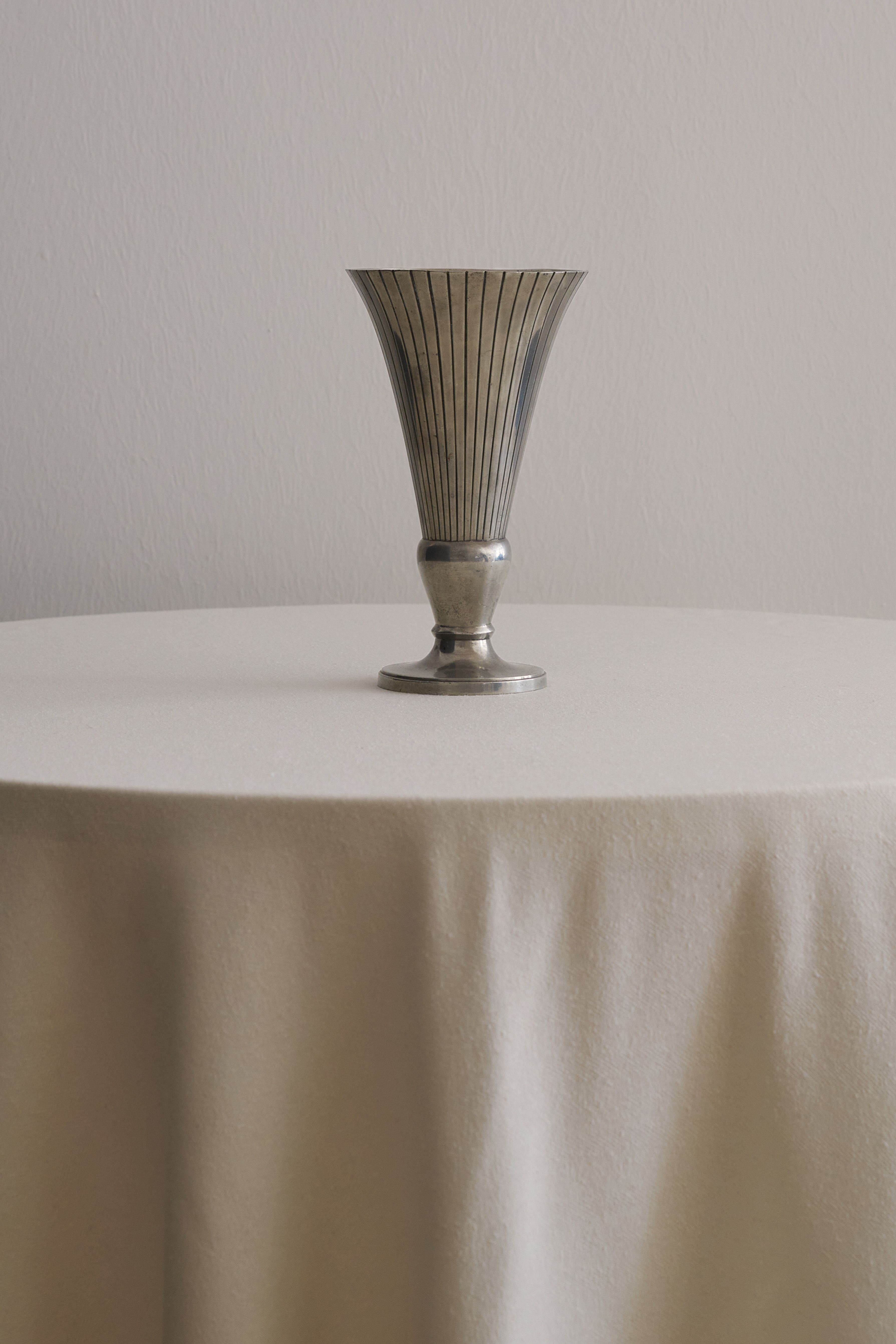 Very rare vase by Danish designer Just Andersen, with incised lines is model number "2495". Made in Denmark in the 1930s out of Pewter.